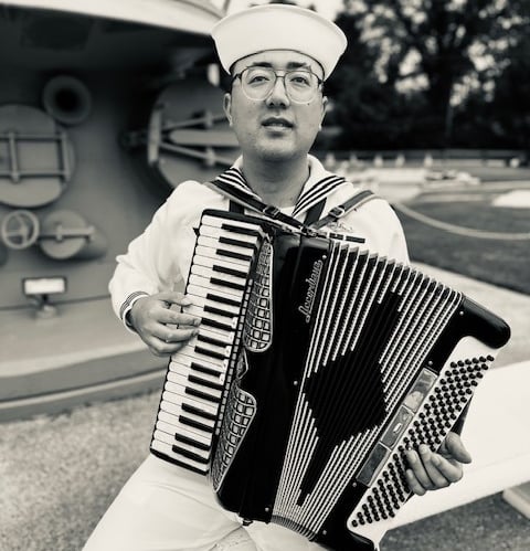 My name is Spencer Jones. I'm a network engineer and Navy submarine reservist with 10 years of active duty and 3 years in the reserves. I've lived in New London since 2019, and I've been playing accordion for three years - though I've been playing stringed instruments (violin, banjo, mandolin, ukulele, guitar) for much longer.